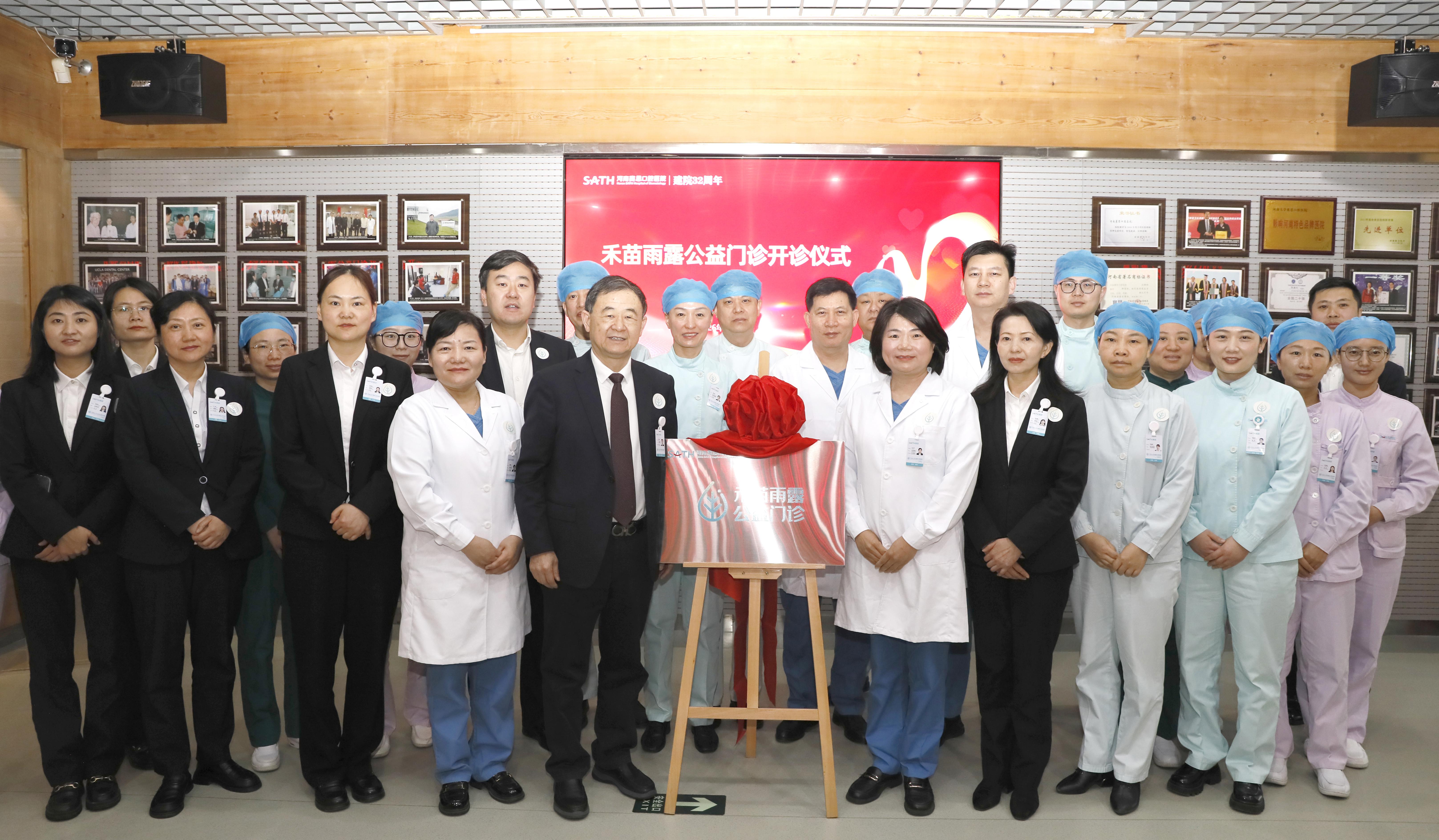 回顾以往,曾以学术交流、周年庆等形式庆祝生日。今天,我们举行了一个特殊的仪式,也是我们多年的愿望,也是对32年来医疗事业的致敬和延伸——禾苗雨露口腔公益门诊正式开诊!医院院长何宝杰、执行院长刘哲、业务院长滕海英等医院领导、部分医护人员代表、首批受助者代表参加了揭牌和开诊仪式。